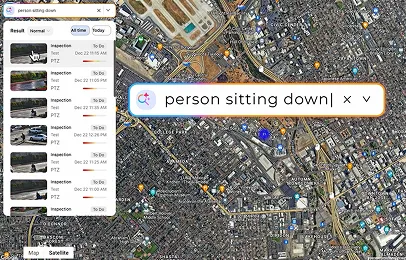 Type “red hoodie” or “fighting by the fountain” to instantly pull GPS-stamped video clips.